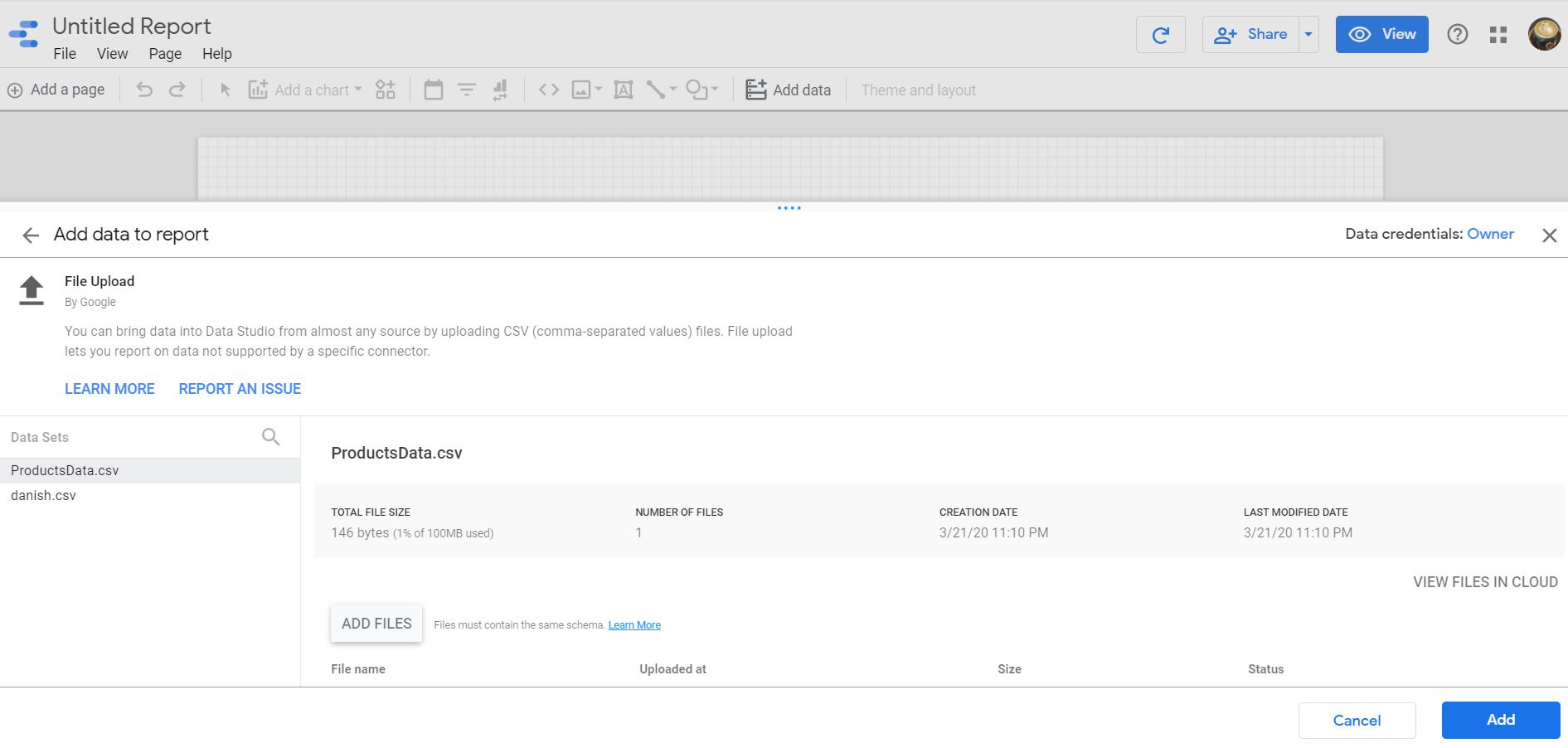 - In order to generate a report in Google Data Studio, we will need a SQL view for the dataset.