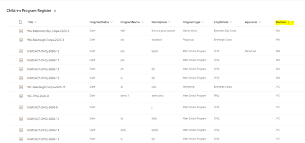Now, let’s create an insightful map visual using a SharePoint List. You can use any list which has some sort of location info whether it be addressed or state/City/country. I will use the Programs data categorized by states in Australia. For the location, I will use a normal Choice Column which has a list of all the Australian states.