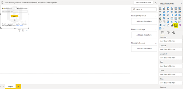 Let’s open the Power BI Desktop and connect to a SharePoint List data source that contains the mapping data. Now click on the ArcGIS map visual from Visualizations.