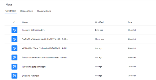 In the Power Automate portal, you can find your flow listed on the Cloud flows tab under My flows. The List flows will be named based on the flow name and if that name is already taken then it will follow the format of ListID – FlowName.