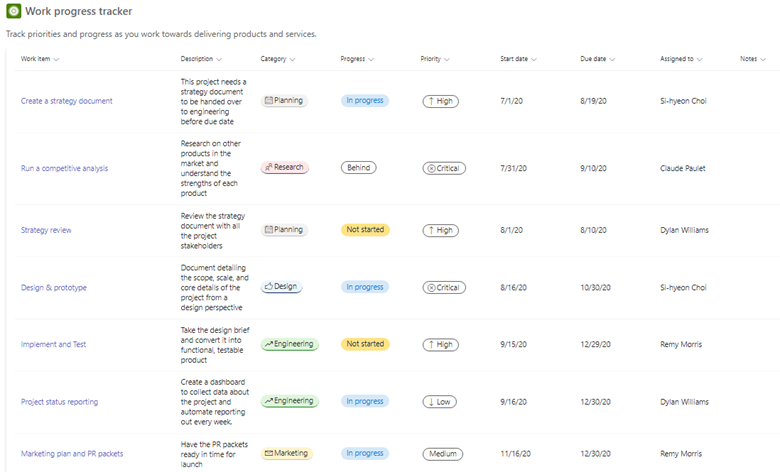 The Work Progress Tracker template will assist you in organizing and managing your work and projects. It enables you to see all of your tasks and projects in one place, Track priorities, and progress as you work towards delivering products and services.