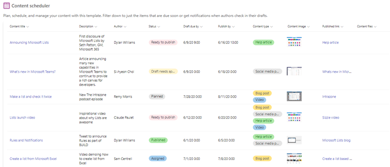 The content scheduler template helps you to Plan, schedule, and manage your content with this template. Filter down to just the items that are due soon or get notifications when authors check in their drafts. it’s similar to creating a content scheduler in Google Calendar, but you get a ready-made template here that is easy to tweak