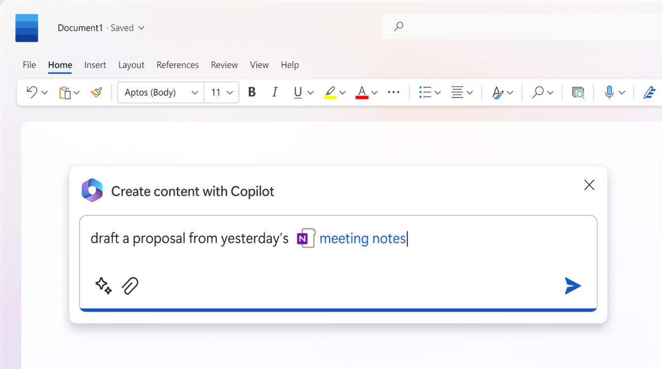 Copilot can help you to jump-start the creative process so you never start with a blank slate again. It can create a first draft of a document for you based on your prompt and then help in driving your unique ideas forward, prompting Copilot to shorten, rewrite or give feedback. Using MS Graph, Copilot can include content from collaborative documents across the organization and make it sound professional or casual.