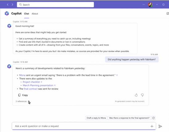 Copilot can quickly answer your routine emails and can also pull discussions from email threads and content across Microsoft 365 helping you clear your inbox in minutes, not hours. It will also allow you to adjust the tone and length of your responses.