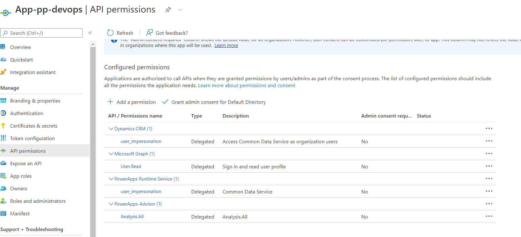 Azure DevOps is a (SaaS) platform from Microsoft that provides an end-to-end DevOps toolchain for developing and deploying software. It also integrates with most leading tools on the market and is a great option for orchestrating a DevOps toolchain. Microsoft Power Platform Build Tools can be installed into your Azure DevOps organization from Azure Marketplace. The azure Service principal is used for authenticating and connecting to your Power Platform Environment. The build tools are available at no cost. However, a valid subscription to Azure DevOps is required to utilize the Build Tools.