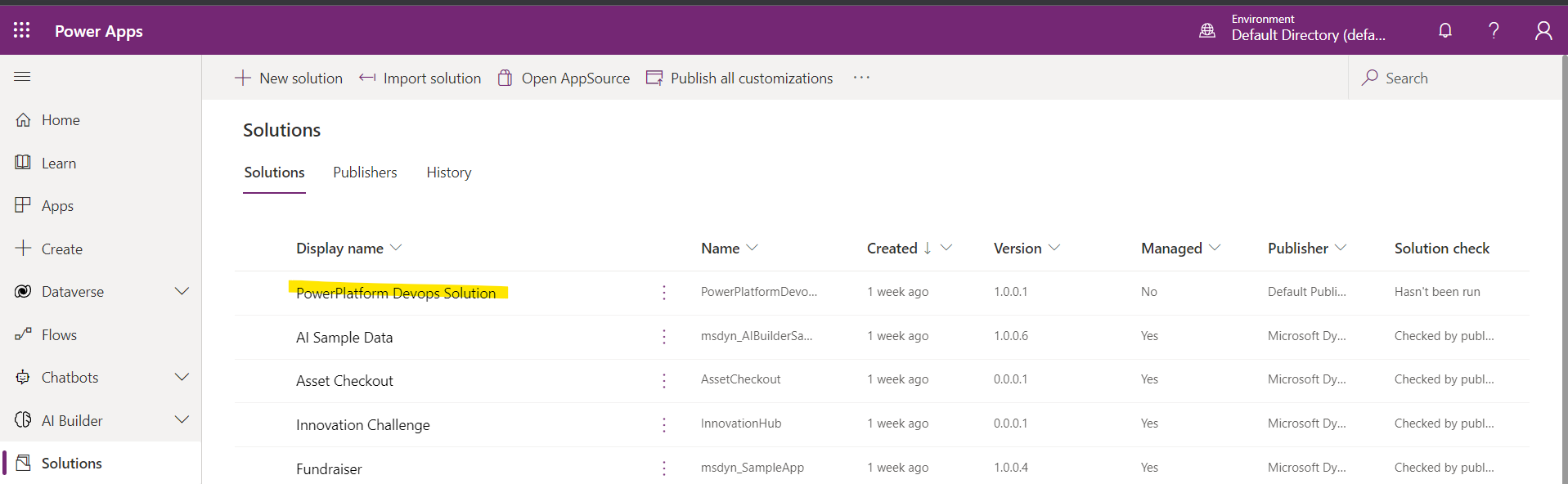Once the workflow has run successfully, you should be able to see the solution in the destination environment.