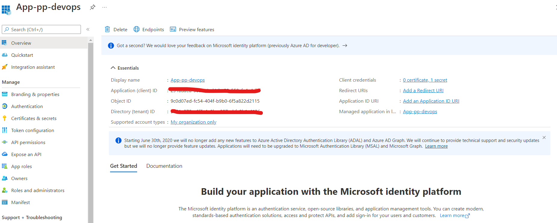Create a Secret and then copy the value of the secret, Application ID, and Tenant ID